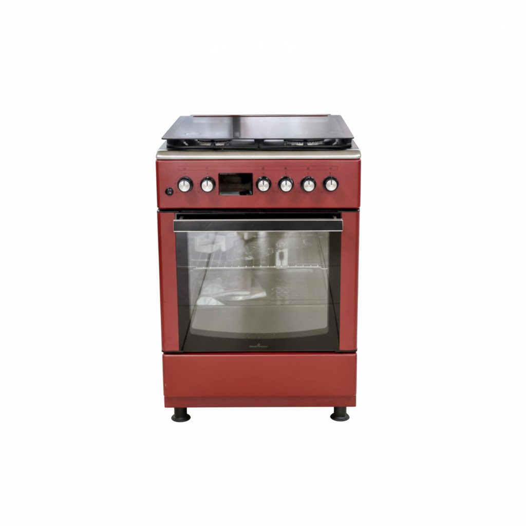 Cuisinière à gaz SUPER FLAME SFKI-6402GBZ – 4 feux – format 60×60 cm – allumage automatique + four à gaz 150-250 °C – BORDEAUX / GRIS / MAT - Garantie 6 mois