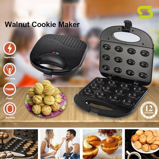 Gaufrier Électrique à 12 Trous – Machine à Gâteaux Noix – Petit Déjeuner Rapide – Plaques Antiadhésives en Fer – 750W | Disponible sur Iziway