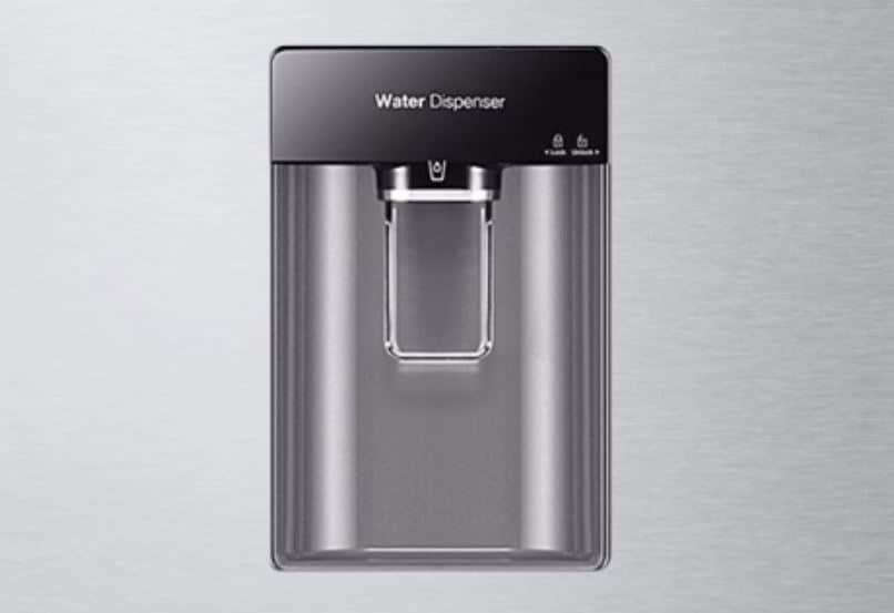 Le réfrigérateur présente à l’extérieur de sa grande porte une fontaine d’eau pour toujours avoir de l’eau fraîche.